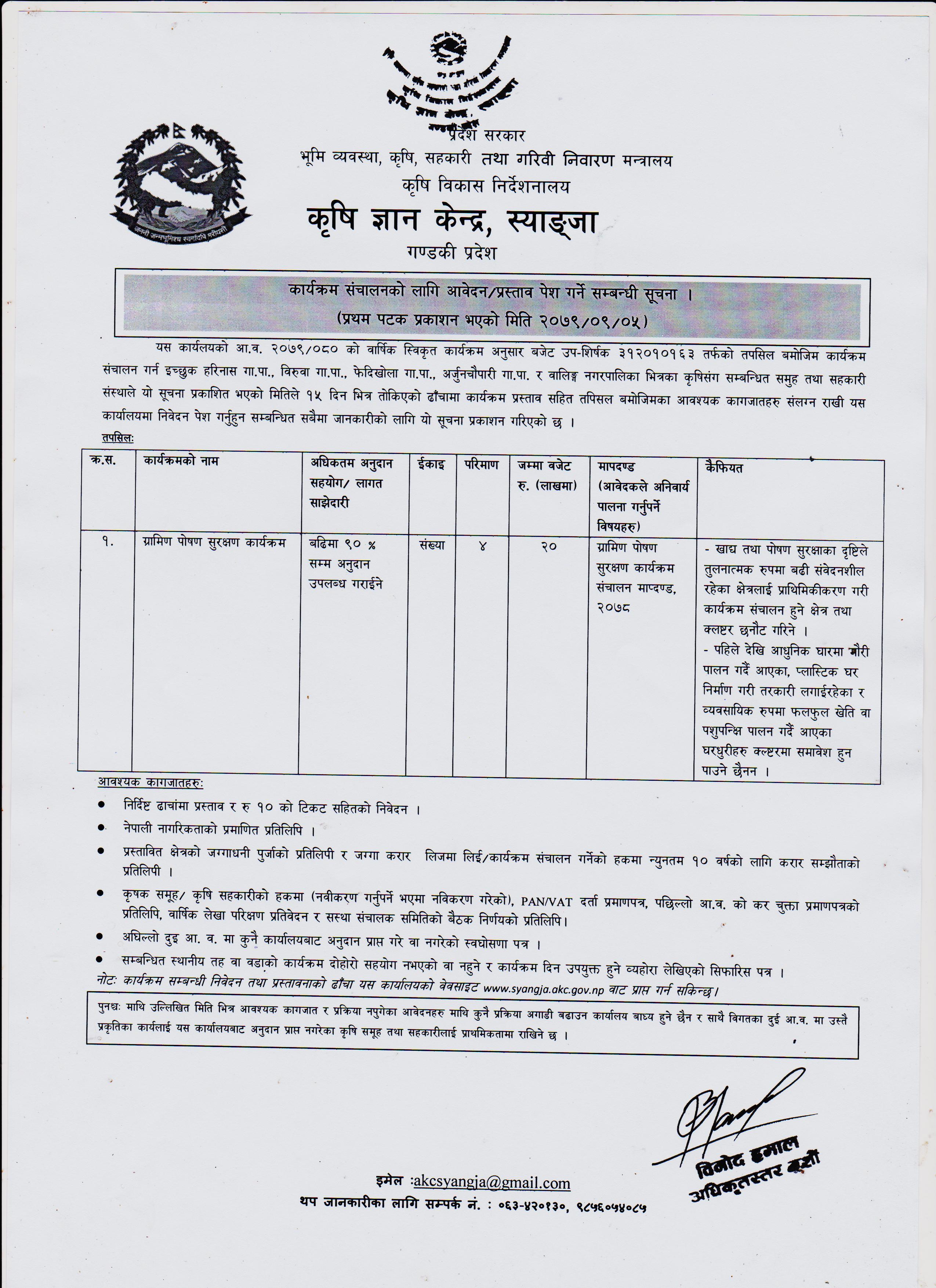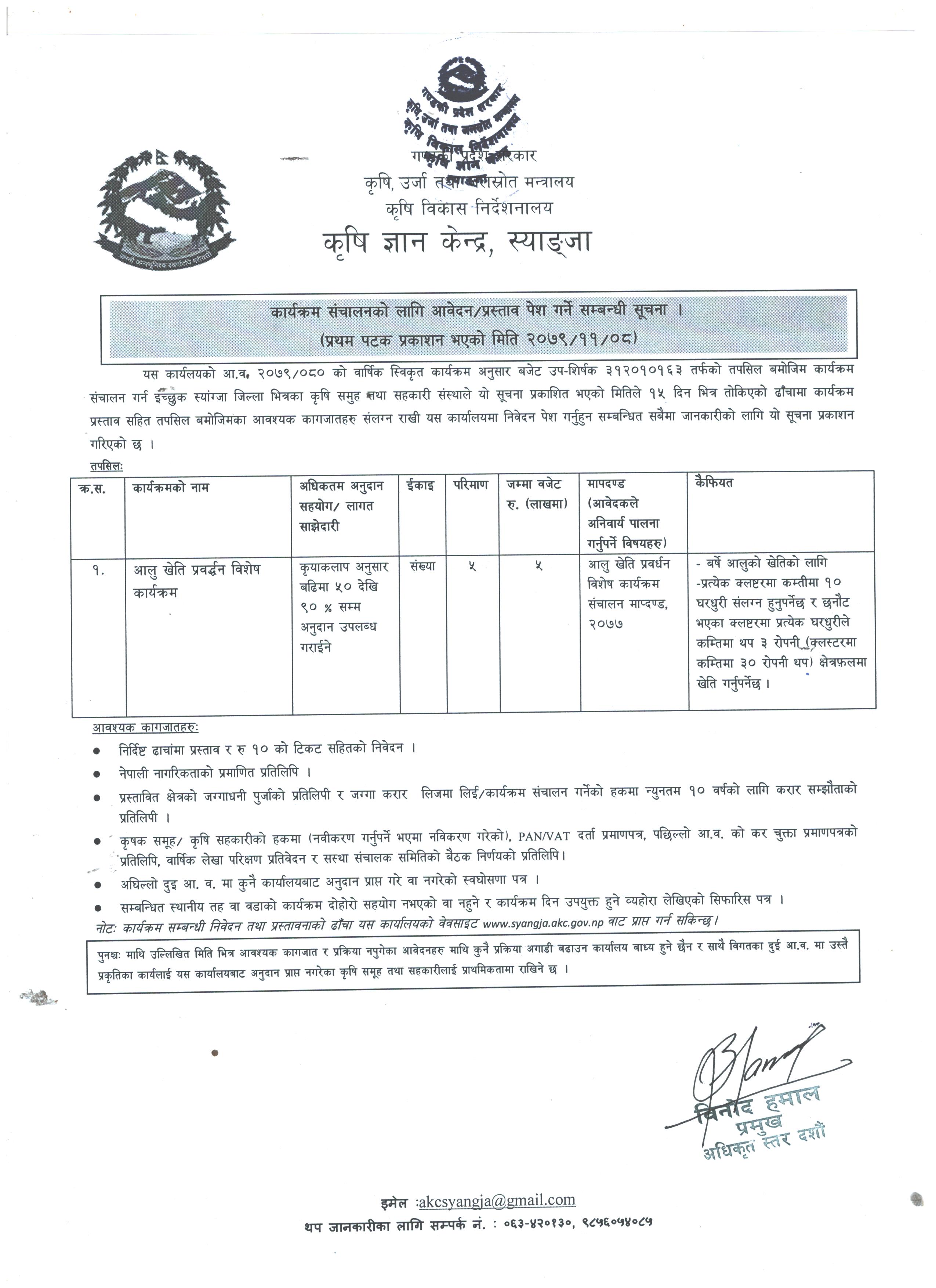 आ.व. ०७९/८० को वार्षिक स्वीकृत कार्यक्रम अनुसार मिति २०७९/११/०२ मा प्रकाशित सूचना 2079-11-02 Closed !!!