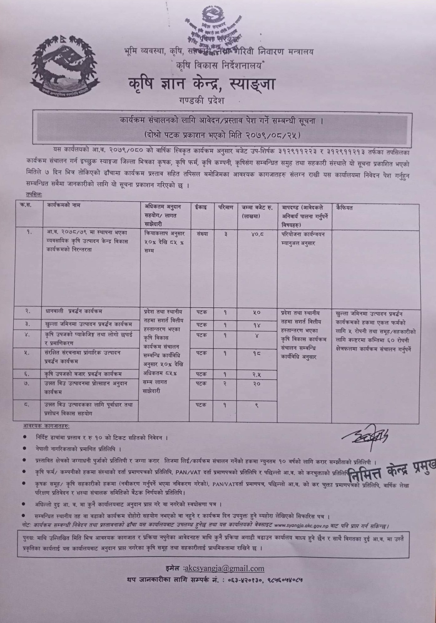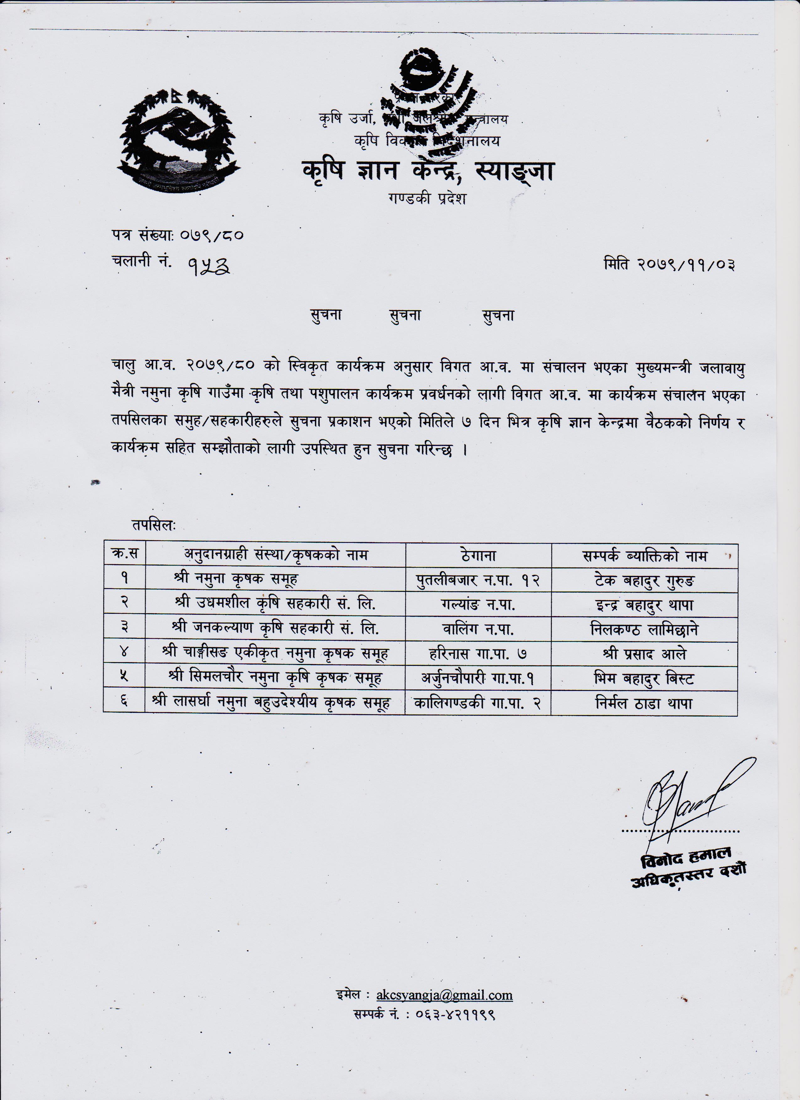 सम्पर्क गर्न आउने बारे सुचना 2079-09-06 Closed !!!