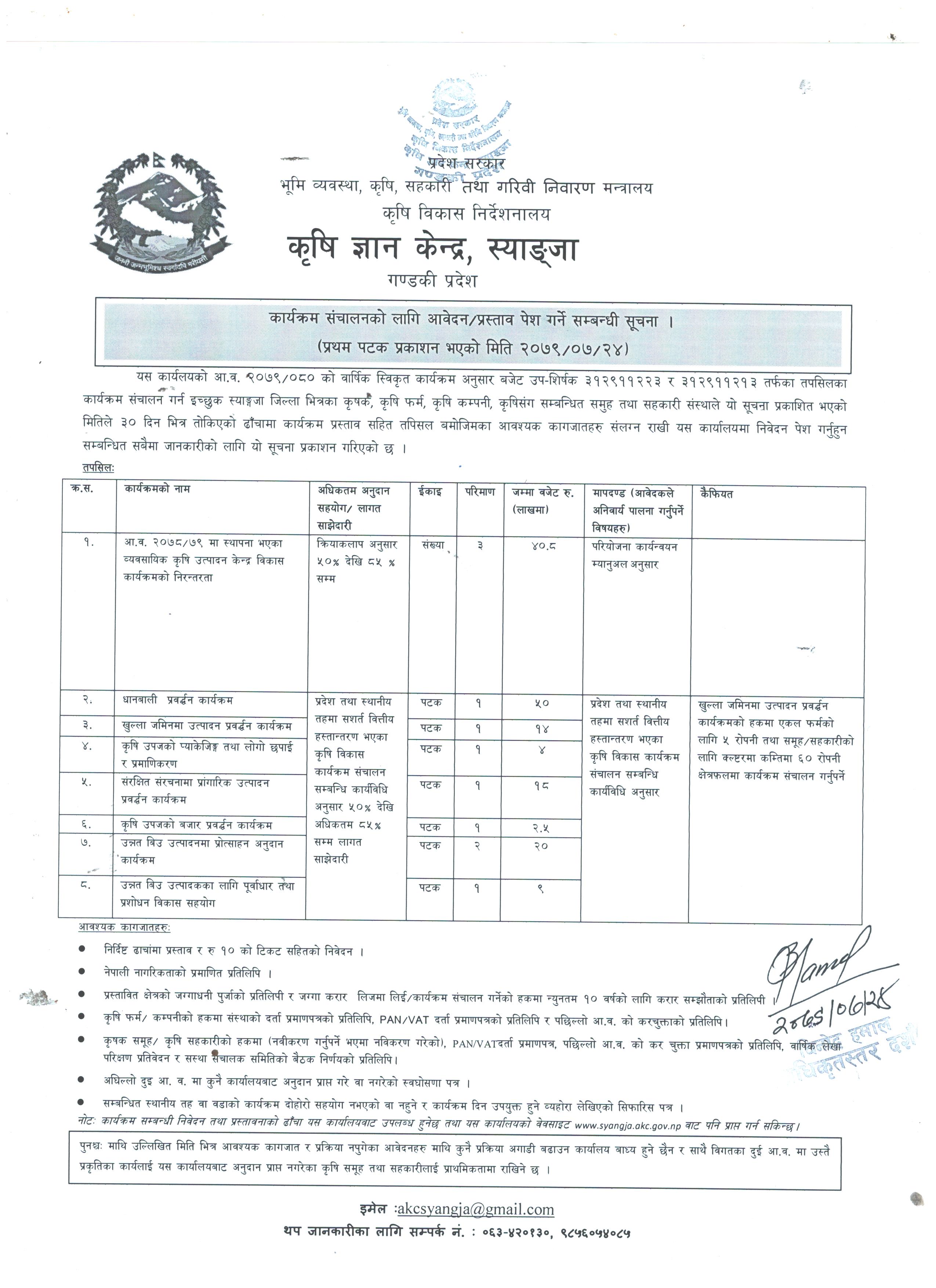 आ. व. 2078/079 को लागि वीज वृद्धि कार्यक्रमको लागि पुर्वधार विकास सहयोग कार्यक्रम सम्बन्धि प्रथम पटक प्रकाशित सुचना