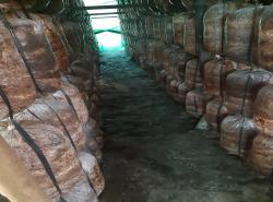 कन्य च्याउ उत्पादनका लागि झुण्ड्याएका परालका डल्ला