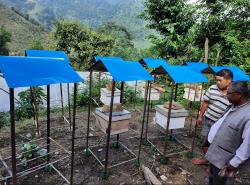 कृषि ज्ञान केन्द्र स्याङ्जाको सहयोगमा स्थापना भएको चिउरीखर्क मौरी घार उद्योगमा बनाइका मौरी घारका फ्रेमहरु